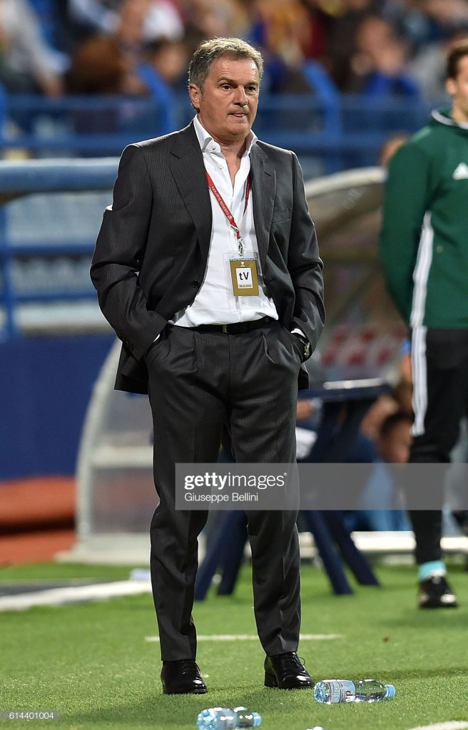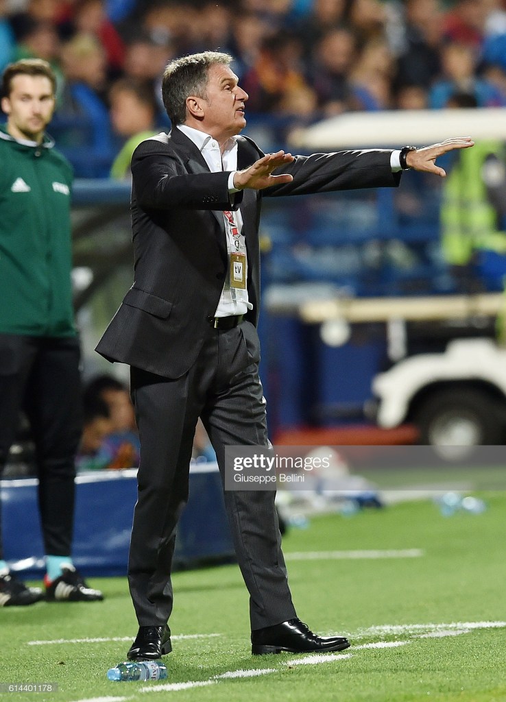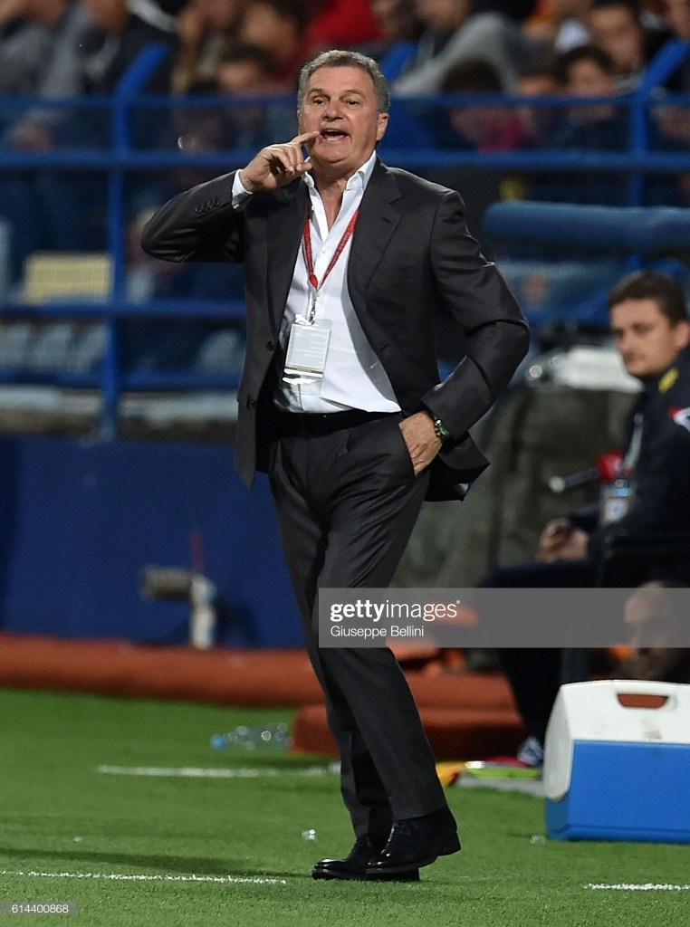 PODGORICA, MONTENEGRO – OCTOBER 08: Ljubisa Tumbakovic head coach of Montenegro during the FIFA 2018 World Cup Qualifier between Montenegro and Kazakhstan at Podgorica City Stadium on October 8, 2016 in Podgorica, Montenegro, (Photo by Giuseppe Bellini/Getty Images)